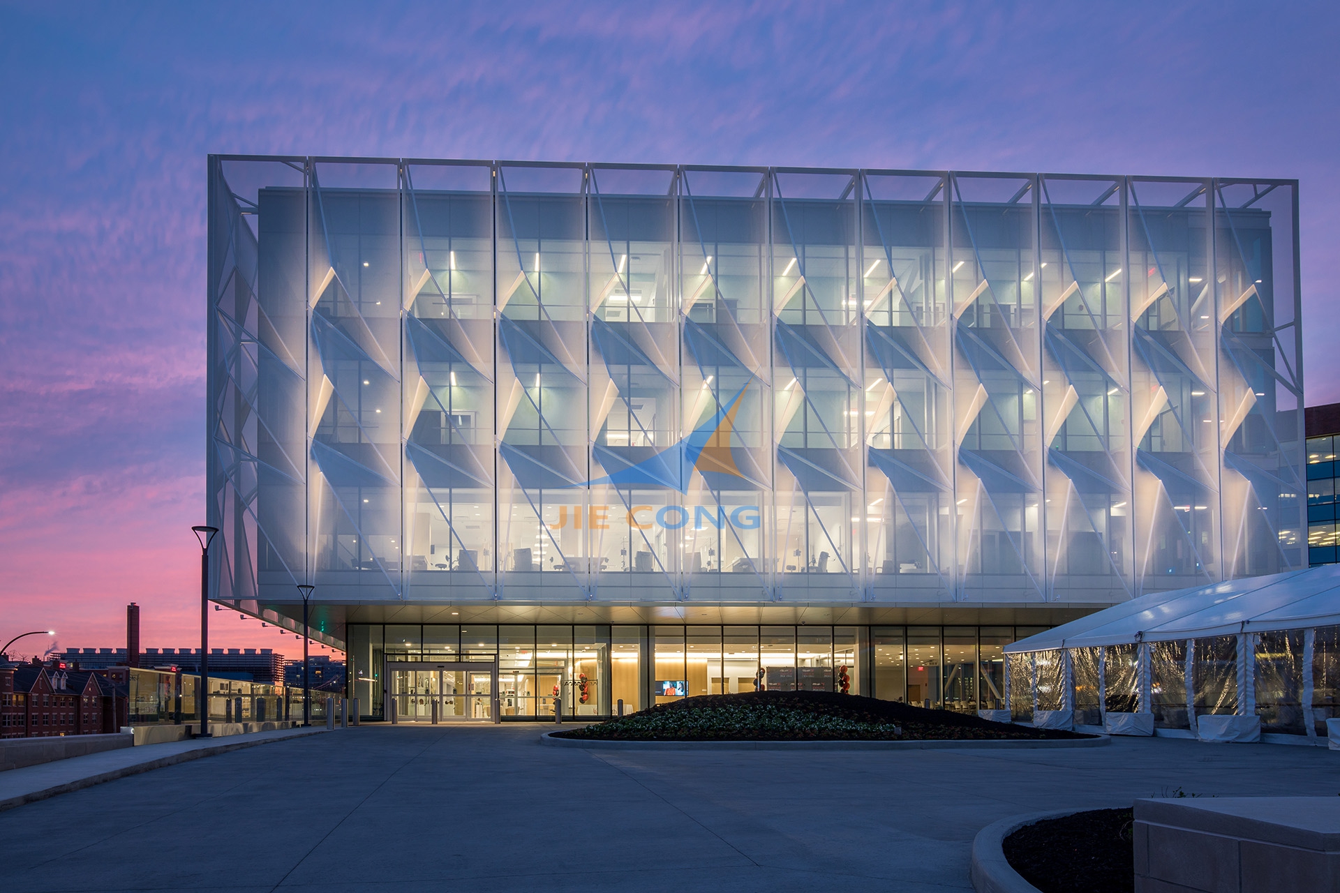 应用场景:膜结构礼堂、多功能厅、图书馆、阅览室、体育场馆与看台等的屋顶和墙体;车棚、门廊、遮阳篷、凉亭、雕塑、花坛、临时实验室、特殊环境模拟等