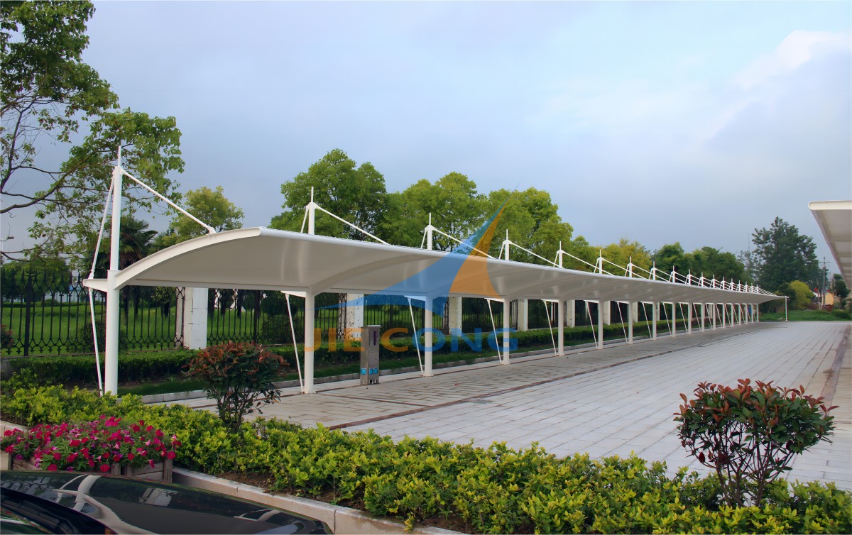 在捷枞,车棚也能与众不同。我们采用高强度、耐候性好的膜材与稳固的钢结构框架相结合,设计建造耐用性强的膜结构车棚,为您的爱车提供坚实的保护伞。同时,我们能结合现代智能技术,为膜结构车棚配备智能化停车系统,如自动感应门、智能照明等,让停车变得轻松便捷,安全无忧。让您的每一次归家,都是一次对美好生活的期待与拥抱。